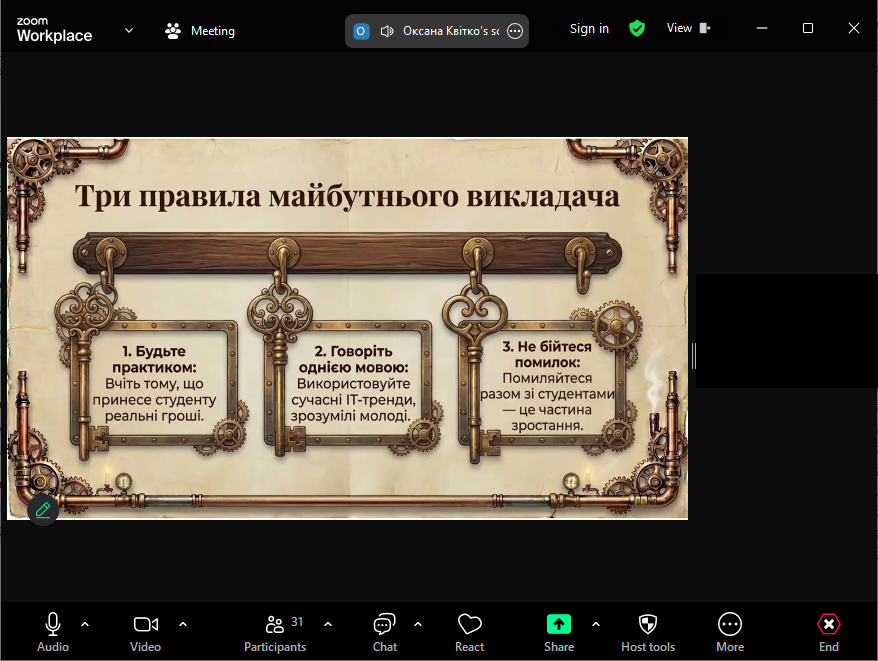 Гостьове заняття «Сучасні практики викладання у ЗП(ПТ)О»